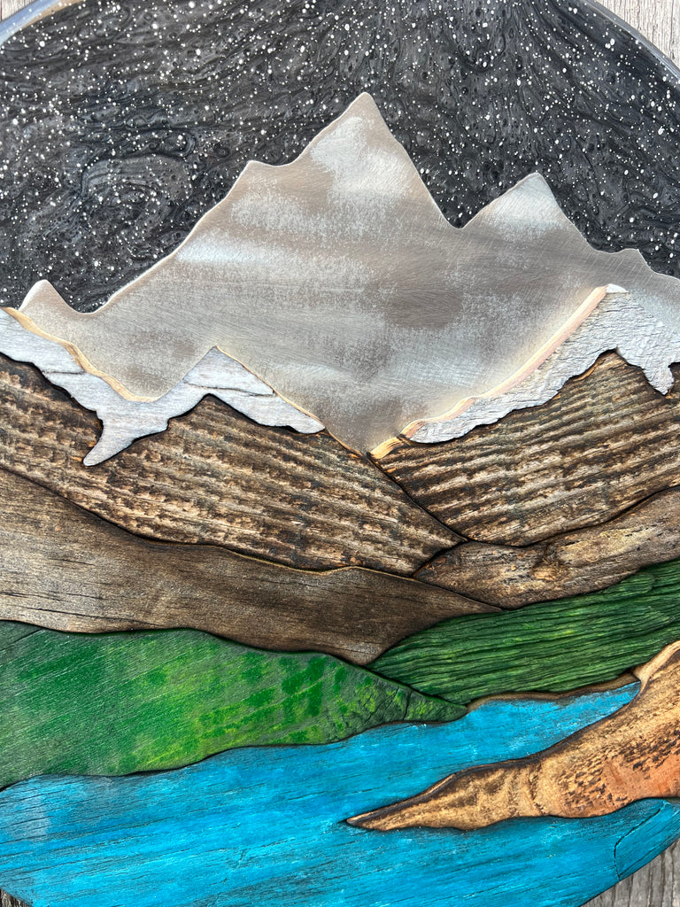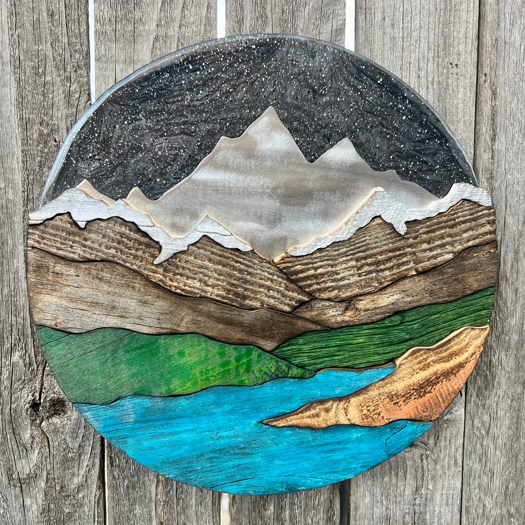 *Composed of: Epoxy resin, textured stainless steel, and many hand-cut pieces of beautiful reclaimed barnwood.
