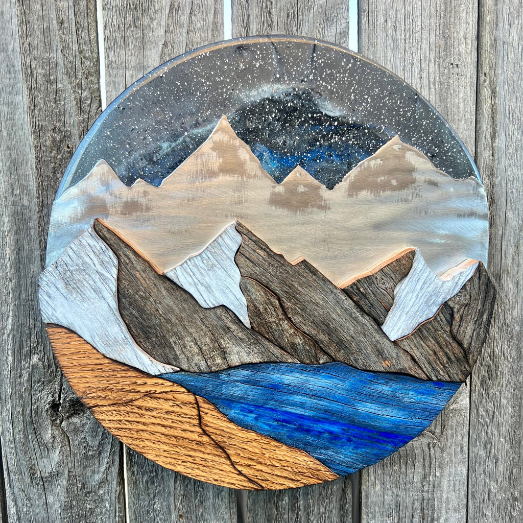 *Composed of: Epoxy resin, textured stainless steel, and many hand-cut pieces of beautiful reclaimed barnwood.