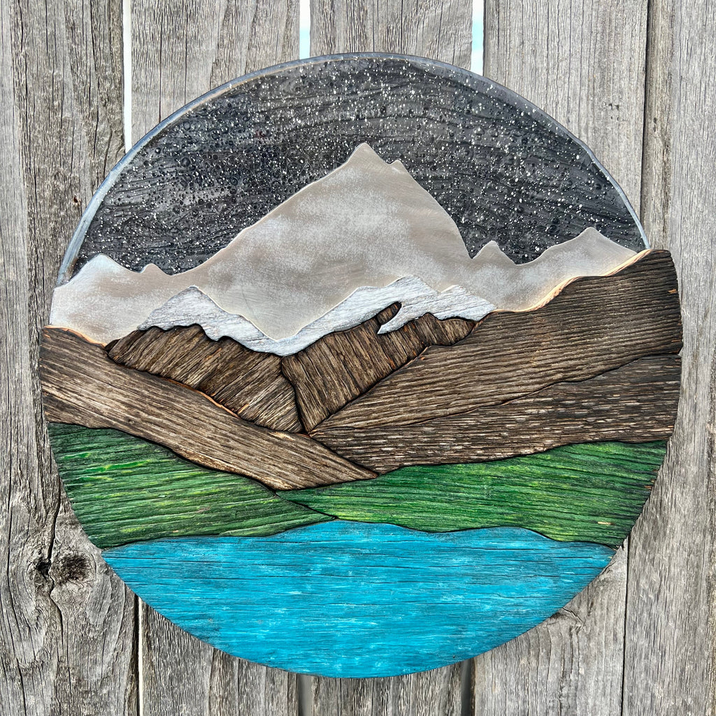 *Composed of: Epoxy resin, textured stainless steel, and many hand-cut pieces of beautiful reclaimed barnwood.