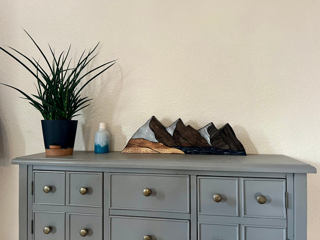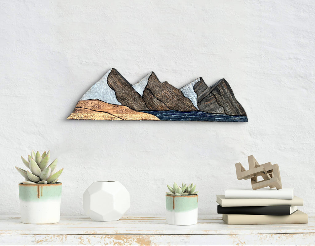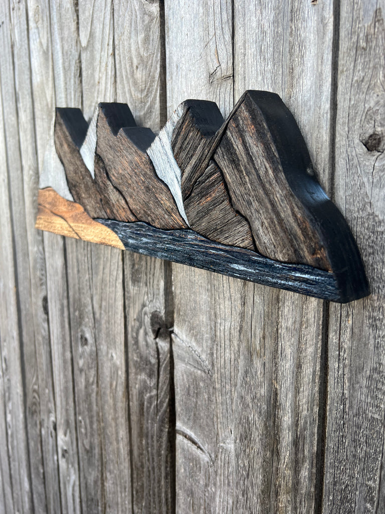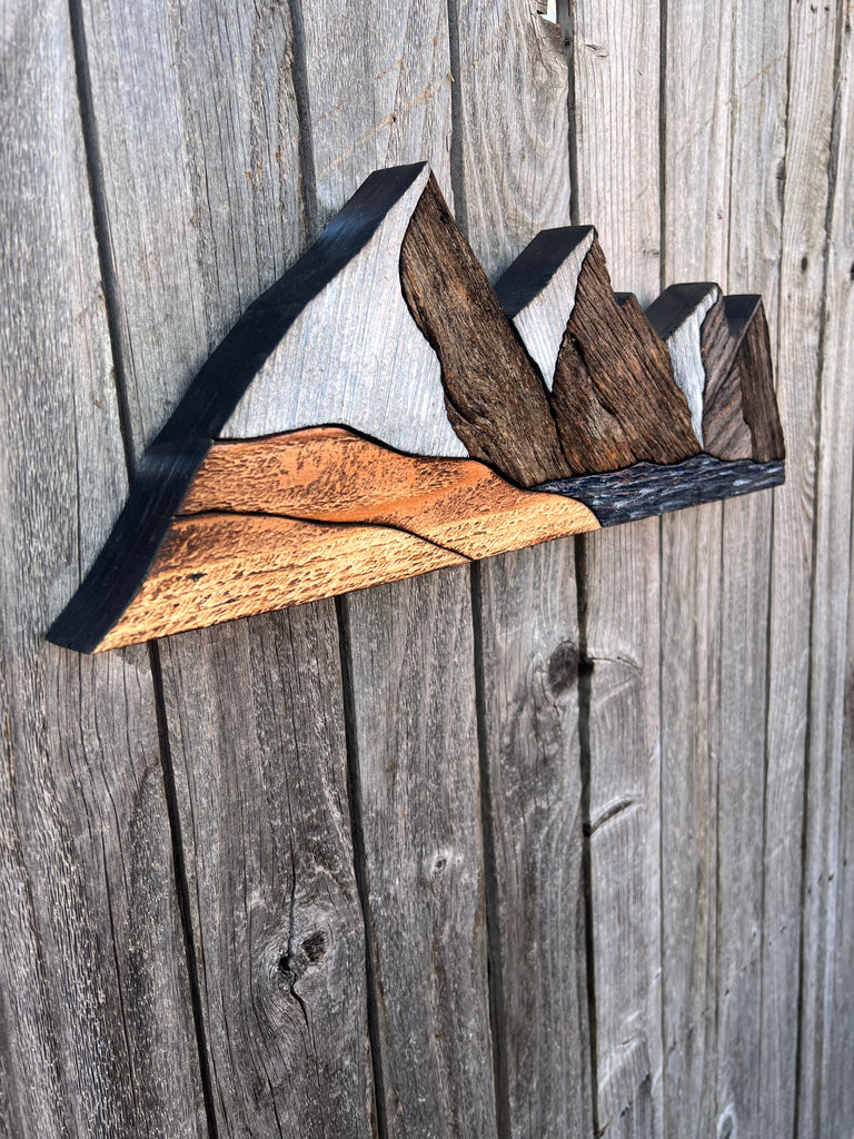 Handcrafted piece by piece, these mountain peaks are part of a new signature series I've titled Reclaimed Ranges. Made without a background, I wanted to create something that felt more dimensional and sculptural. Something that could bring natural texture or character to any space whether hung on the wall, displayed on a shelf, or set on a desk. Each piece is a quiet reminder to wander, explore, and stay connected to the places that make us feel small in the best way.