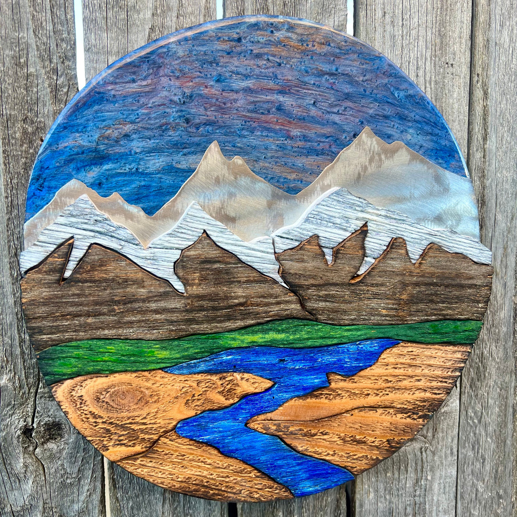 *Composed of: Epoxy resin, textured stainless steel, and many hand-cut pieces of beautiful reclaimed barnwood.