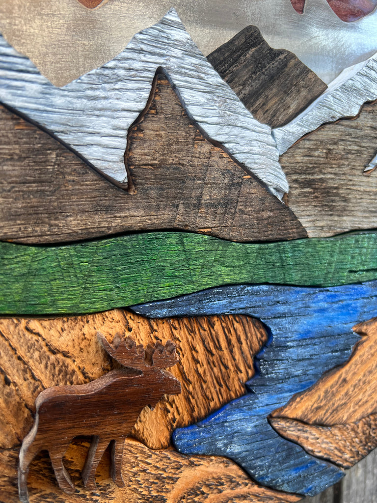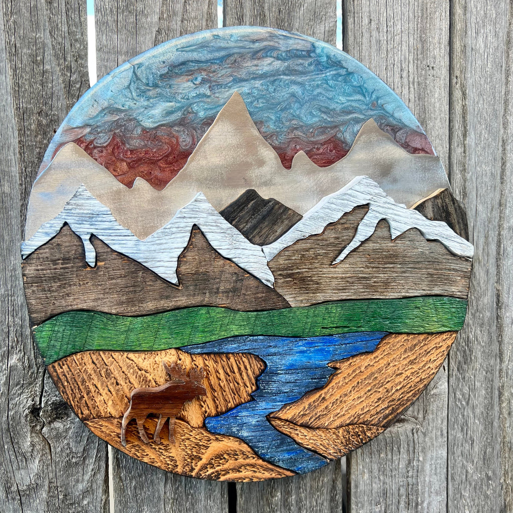 *Composed of: Epoxy resin, textured stainless steel, and many hand-cut pieces of beautiful reclaimed barnwood.